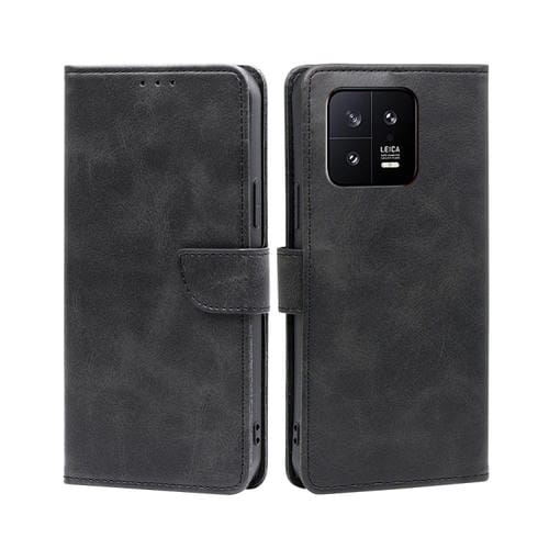 Para Xiaomi 13 Becerro Textura Hebilla Flip Funda de Cuero para Teléfono (Negro)