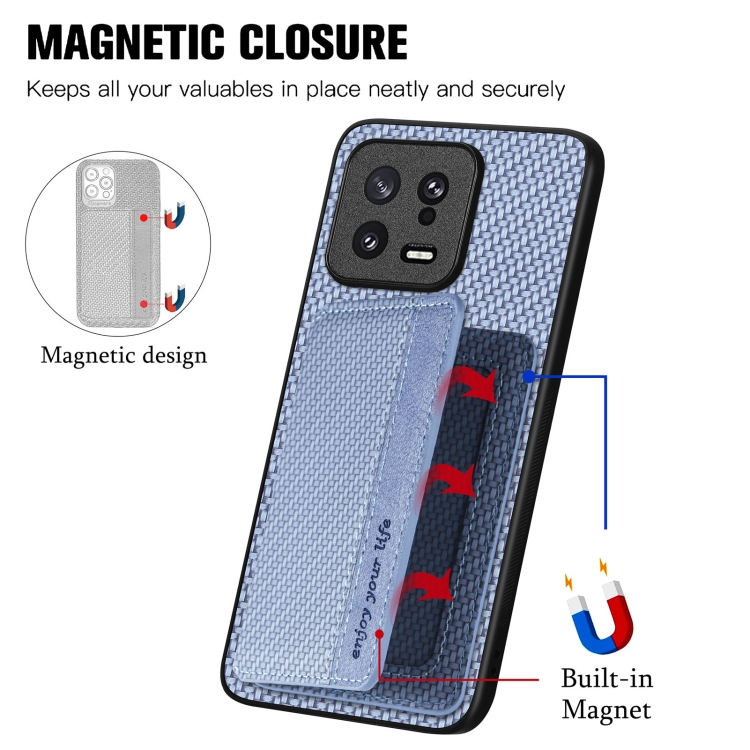 Para Xiaomi 13 Caja de Teléfono con Bolsa de Tarjeta Magnética de Fibra de Carbono (Azul)