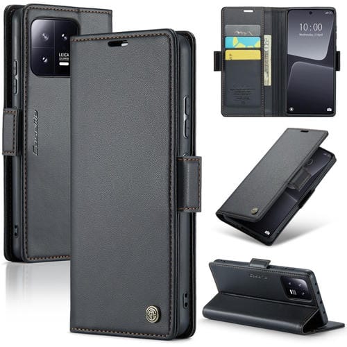 Para Xiaomi 13 Caseme 023 Mariposa Hebilla Litchi Textura Rfid Funda de Cuero Antirrobo para Teléfono (Negro)