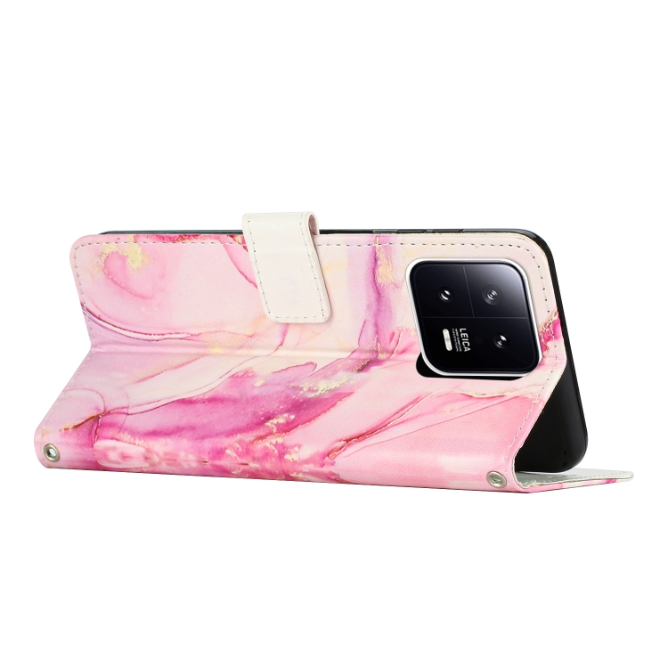 Para Xiaomi 13 Crossbody Funda de Teléfono de Cuero con Patrón de Mármol Pintado (Oro Rosa)