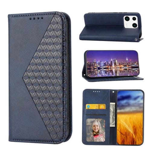 Para Xiaomi 13 Cubic Grid Becerro Textura Magnética Funda de Cuero para Teléfono (Azul)