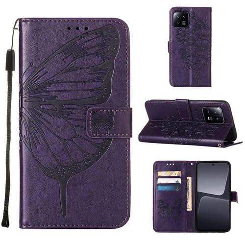 Para Xiaomi 13 Estuche para Teléfono de Cuero con Mariposa En Relieve (Púrpura Oscuro)