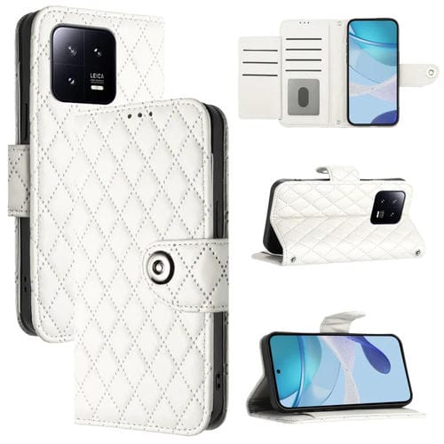 Para Xiaomi 13 Funda de Cuero con Tapa con Textura Rómbica y Cordón (Blanco)