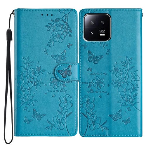 Para Xiaomi 13 Funda de Cuero para Teléfono con Mariposas y Flores (Azul)