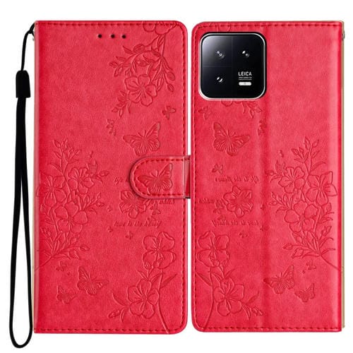 Para Xiaomi 13 Funda de Cuero para Teléfono con Mariposas y Flores (Rojo)