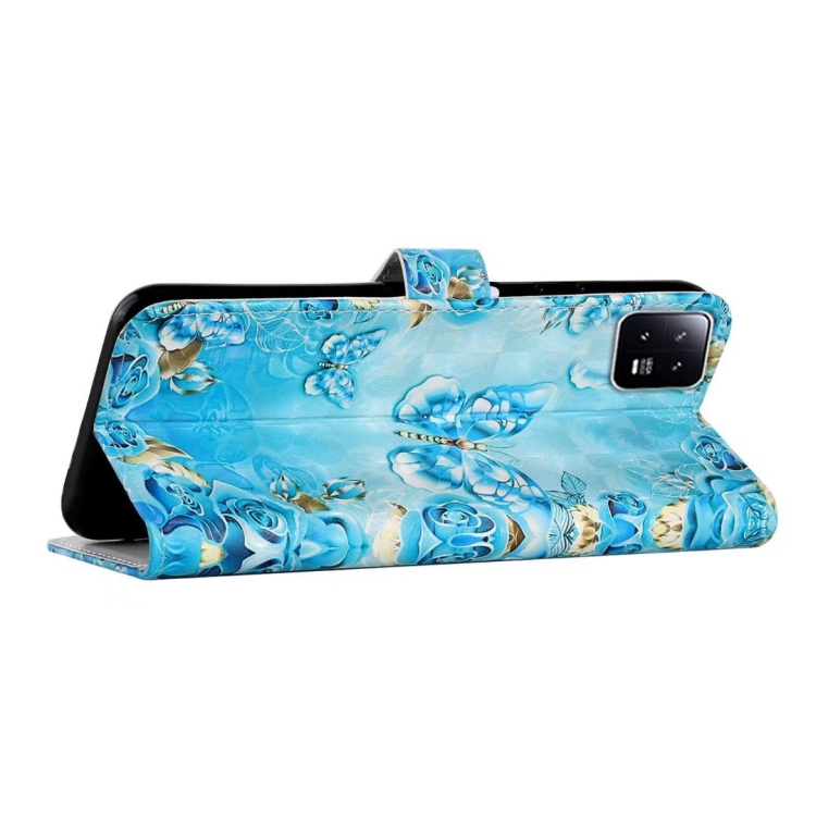 Para Xiaomi 13 Funda de Teléfono de Cuero con Dibujo 3D En Relieve al Óleo (Mariposas Azules)