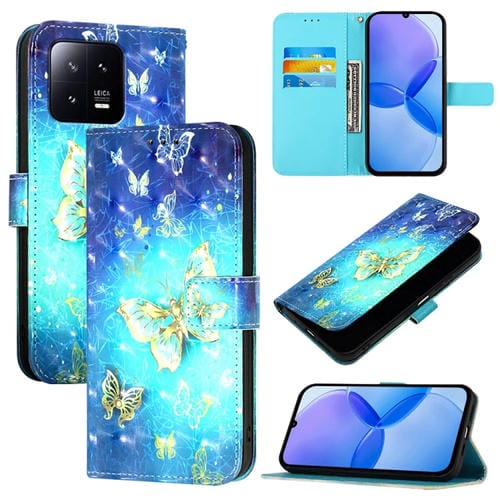 Para Xiaomi 13 Funda de Teléfono de Cuero con Tapa Horizontal con Pintura 3D (Mariposa Dorada)
