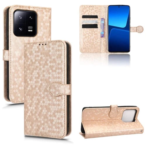 Para Xiaomi 13 Honeycomb Dot Texture Leather Phone Case (Oro)