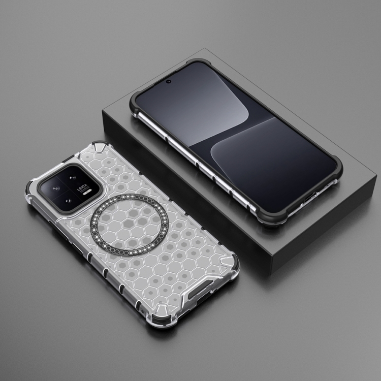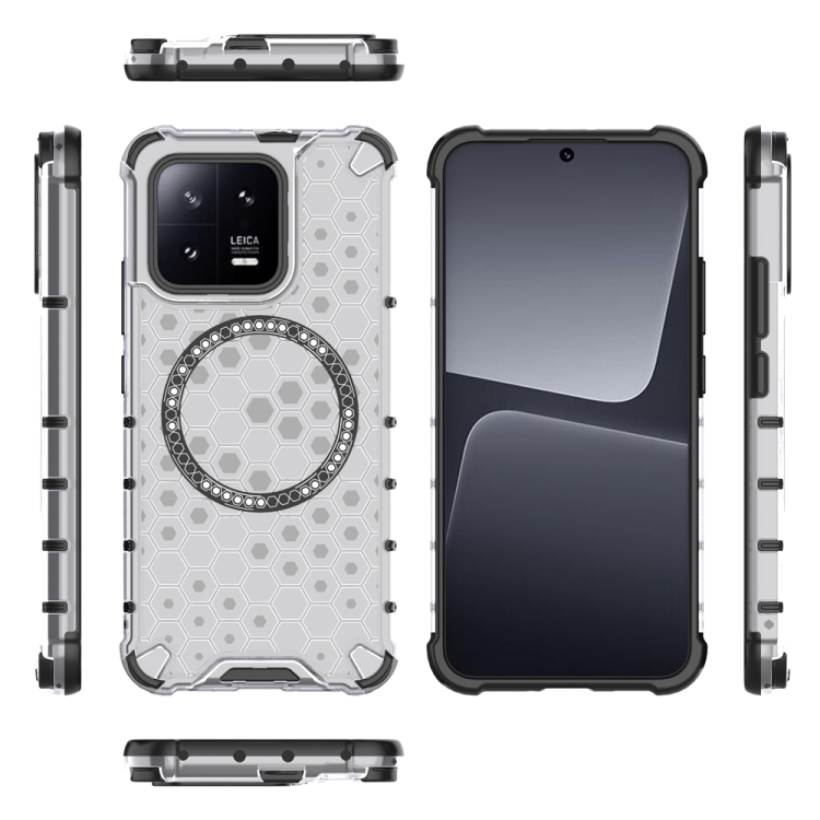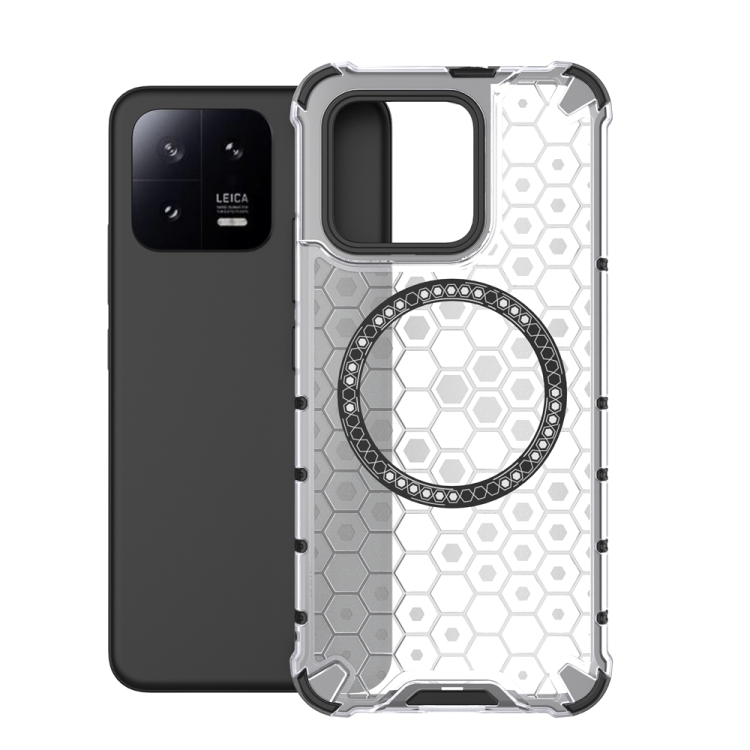 Para Xiaomi 13 Honeycomb Magnetic Ring Funda para Teléfono a Prueba de Golpes (Blanco)