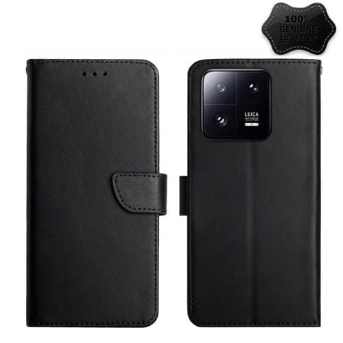 Para Xiaomi 13 Ht02 Funda de Teléfono con Tapa a Prueba de Huellas Dactilares de Cuero Genuino (Negro)