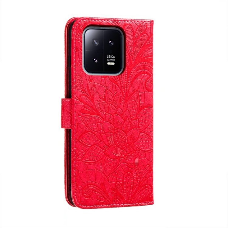 Para Xiaomi 13 Lace Flower Relieve Flip Funda de Cuero para Teléfono (Rojo)