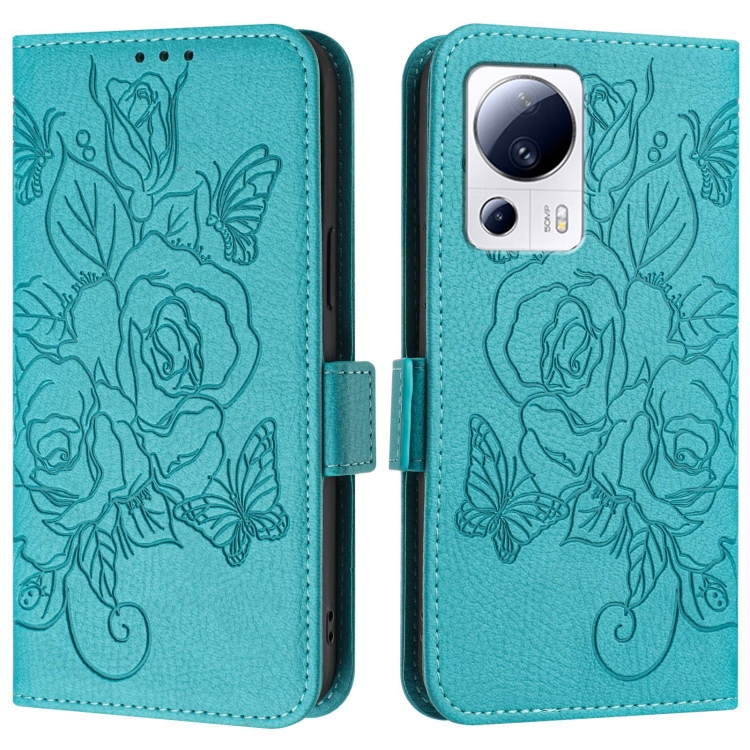 Para Xiaomi 13 Lite 5G / Civi 2 Funda de Teléfono de Cuero Antirrobo Rfid con Relieve Rosa (Azul Claro)
