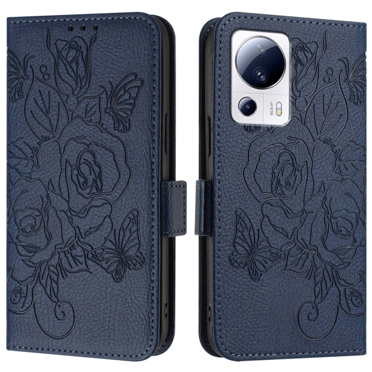 Para Xiaomi 13 Lite 5G / Civi 2 Funda de Teléfono de Cuero Antirrobo Rfid con Relieve Rosa (Azul Oscuro)