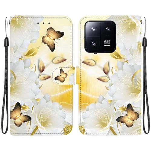 Para Xiaomi 13 Pro 5G Funda de Teléfono de Cuero con Dibujo Coloreado con Textura de Cristal (Epiphyllum de Mariposa Dorada)
