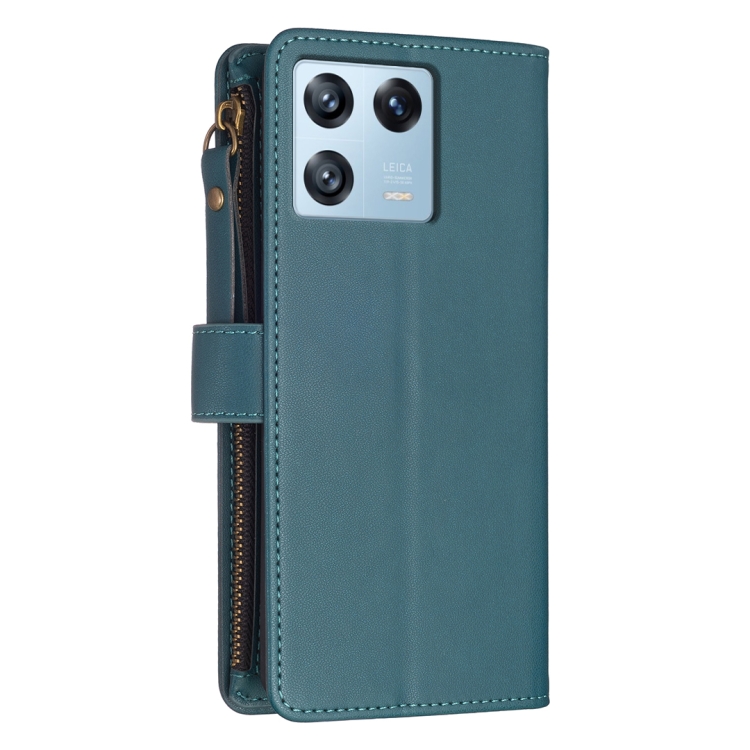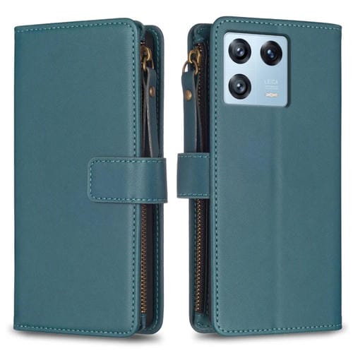Para Xiaomi 13 Pro 9 Ranuras para Tarjetas Cremallera Cartera Funda de Cuero con Tapa para Teléfono (Verde)