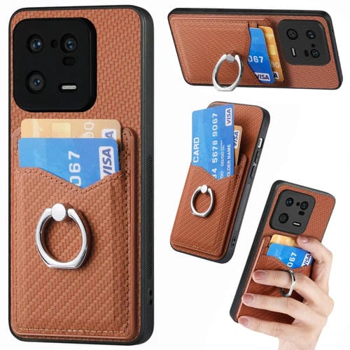 Para Xiaomi 13 Pro Carbon Fiber Card Wallet Ring Holder Phone Case (Marrón)