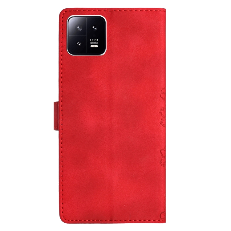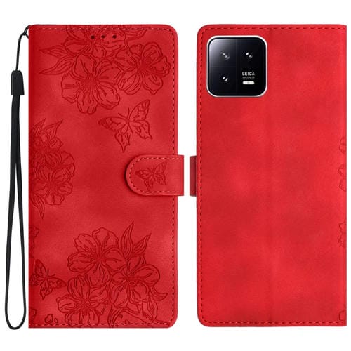 Para Xiaomi 13 Pro Cherry Blossom Butterfly Skin Feel Funda para Teléfono de Pu En Relieve (Rojo)
