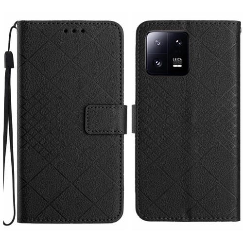 Para Xiaomi 13 Pro Funda de Cuero con Textura de Rejilla Rómbica (Negro)