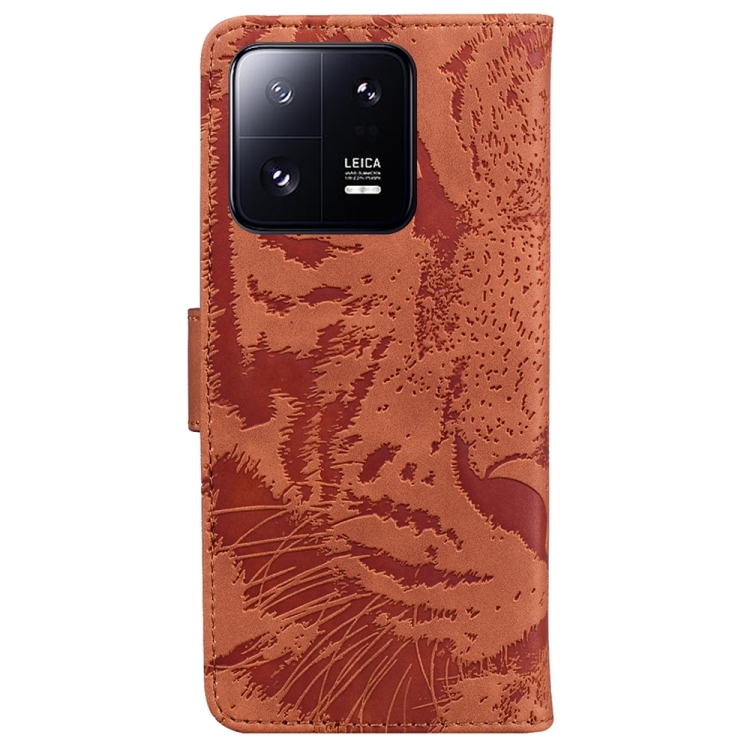 Para Xiaomi 13 Pro Funda de Teléfono de Cuero con Estampado de Tigre En Relieve (Marrón)