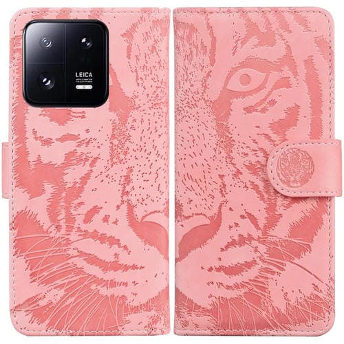 Para Xiaomi 13 Pro Funda de Teléfono de Cuero con Estampado de Tigre En Relieve (Rosa)