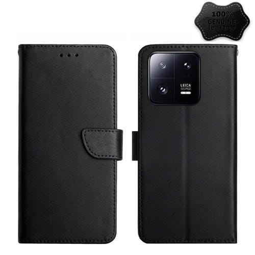 Para Xiaomi 13 Pro Ht02 Funda de Teléfono con Tapa a Prueba de Huellas Dactilares de Cuero Genuino (Negro)