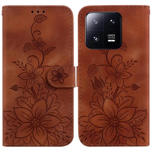 Para Xiaomi 13 Pro Lily Funda de Cuero En Relieve para Teléfono (Marrón)