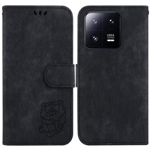 Para Xiaomi 13 Pro Little Tiger Funda de Cuero para Teléfono En Relieve (Negro)