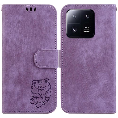 Para Xiaomi 13 Pro Little Tiger Funda de Cuero para Teléfono En Relieve (Púrpura)