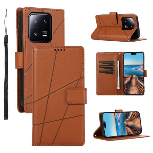 Para Xiaomi 13 Pro Pu Funda de Teléfono con Línea En Relieve con Textura de Cuero Genuino (Marrón)