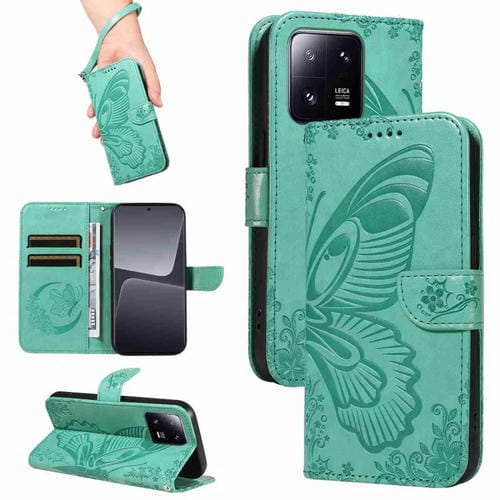 Para Xiaomi 13 Pro Swallowtail Butterfly Funda de Cuero para Teléfono En Relieve (Verde)