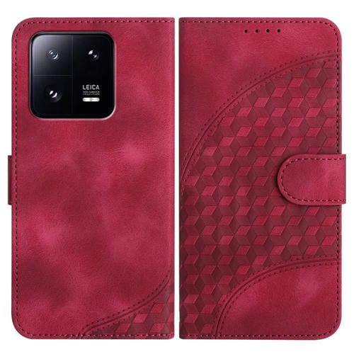 Para Xiaomi 13 Pro Yx0060 Funda de Cuero para Teléfono con Relieve y Cabeza de Elefante con Cordón (Rojo Rosa)