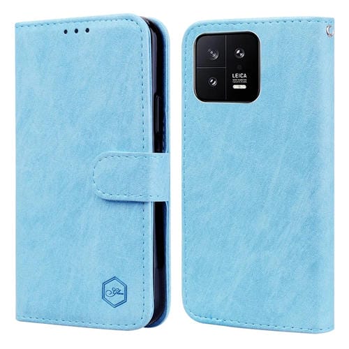 Para Xiaomi 13 Sensación de Piel Aceite Textura de Cuero Pu + TPU Funda para Teléfono (Azul Claro)