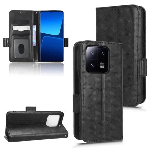 Para Xiaomi 13 Symmetrical Triangle Leather Phone Case (Negro)