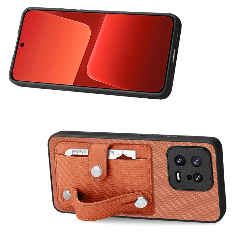Para Xiaomi 13 Wristband Kickstand Wallet Back Phone Case con Herramienta Cuchillo (Marrón)