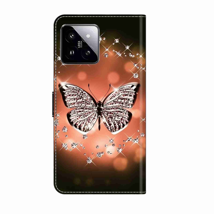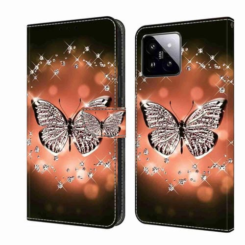 Para Xiaomi 14 Crystal 3D Funda Protectora De Cuero Para Teléfono A Prueba De Golpes (Mariposa De Cristal)