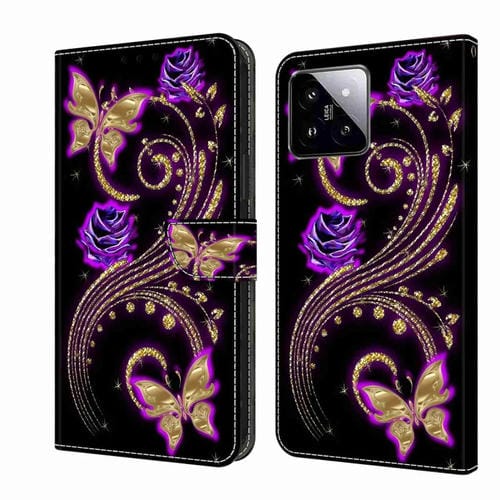 Para Xiaomi 14 Crystal 3D Funda Protectora De Cuero Para Teléfono A Prueba De Golpes (Mariposa De Flor Púrpura)