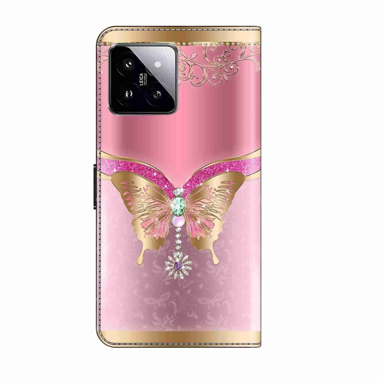Para Xiaomi 14 Crystal 3D Funda Protectora De Cuero Para Teléfono A Prueba De Golpes (Mariposa Inferior Rosa)