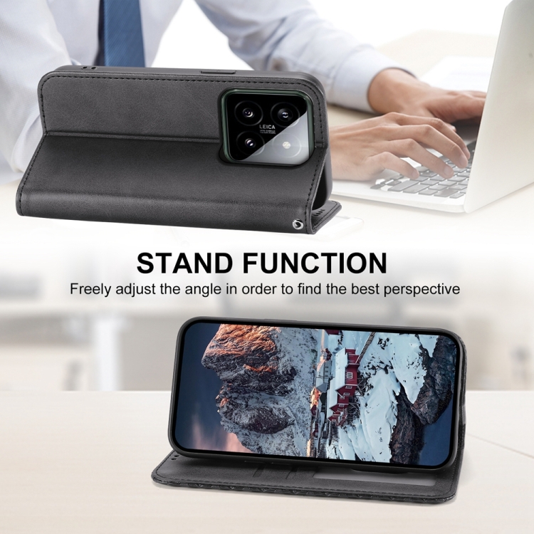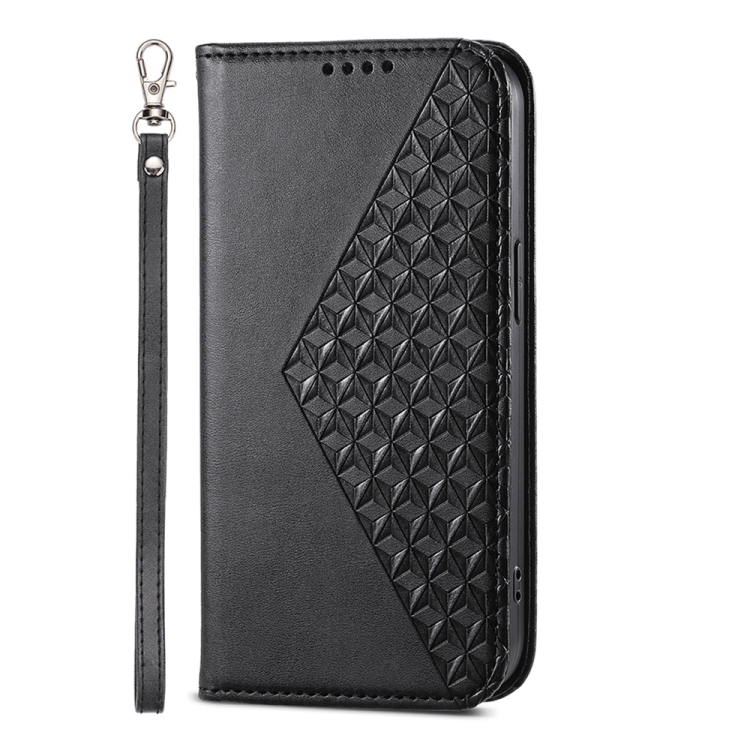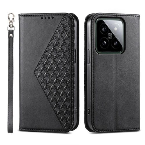Para Xiaomi 14 Cubic Grid Calf Texture Funda De Teléfono De Cuero Magnético (Negro)