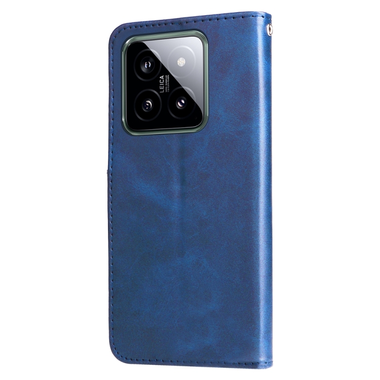 Para Xiaomi 14 Fashion Becerro Textura Cremallera Funda De Cuero Para Teléfono (Azul)