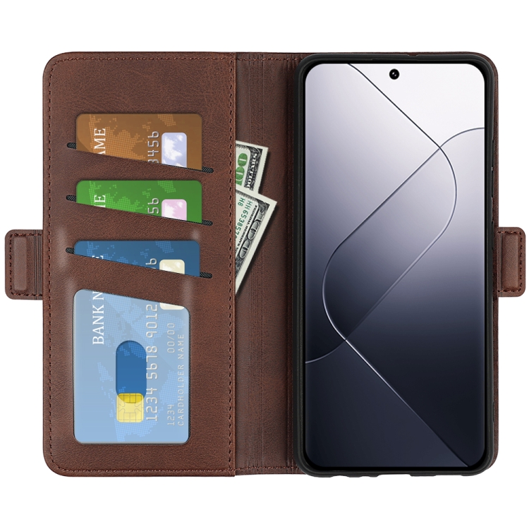 Para Xiaomi 14 Funda De Teléfono De Cuero Con Tapa Horizontal Con Hebilla Magnética De Doble Cara (Marrón)