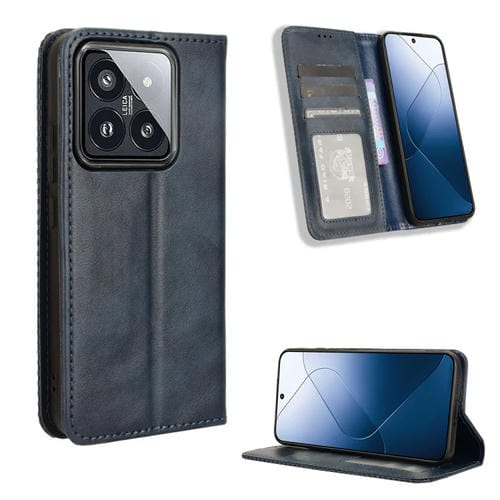 Para Xiaomi 14 Funda De Teléfono De Cuero Con Textura Retro Con Hebilla Magnética (Azul)