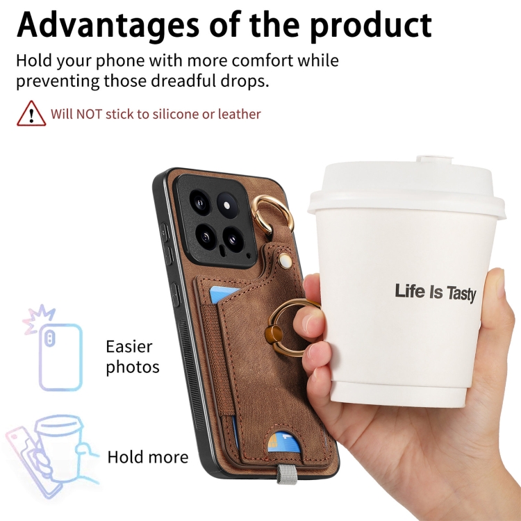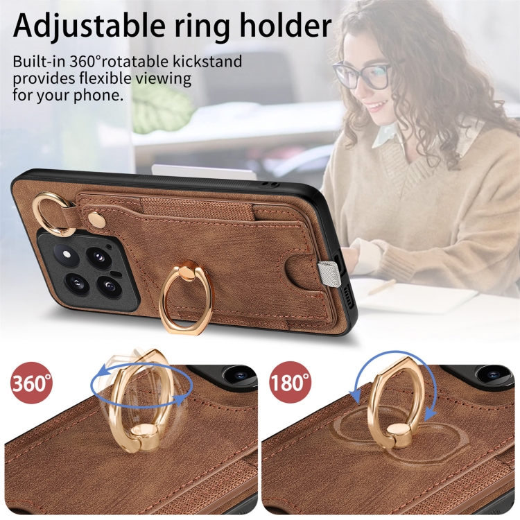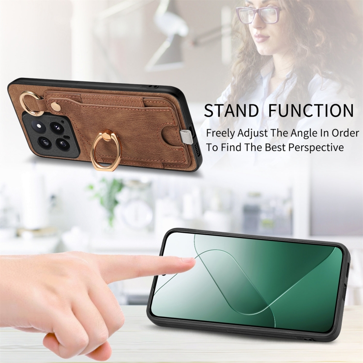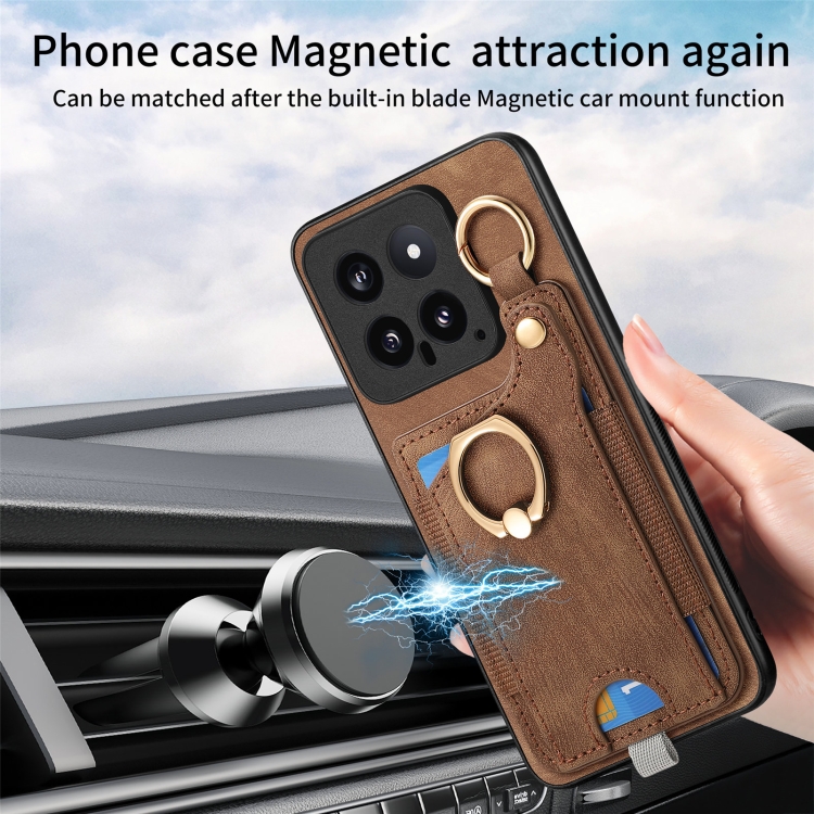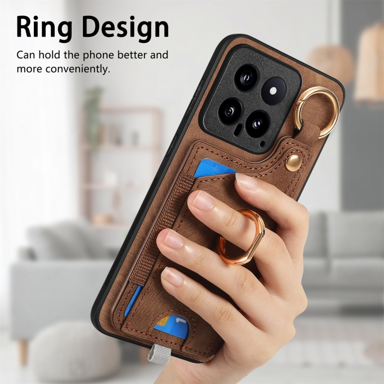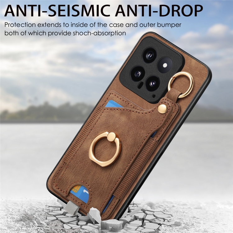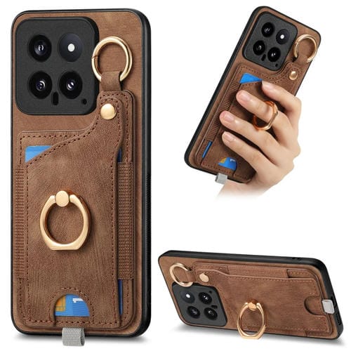 Para Xiaomi 14 Funda Para Teléfono Con Bolsa Para Tarjeta Con Anillo Y Sensación De Piel Retro Con Lazo Para Colgar (Marrón)