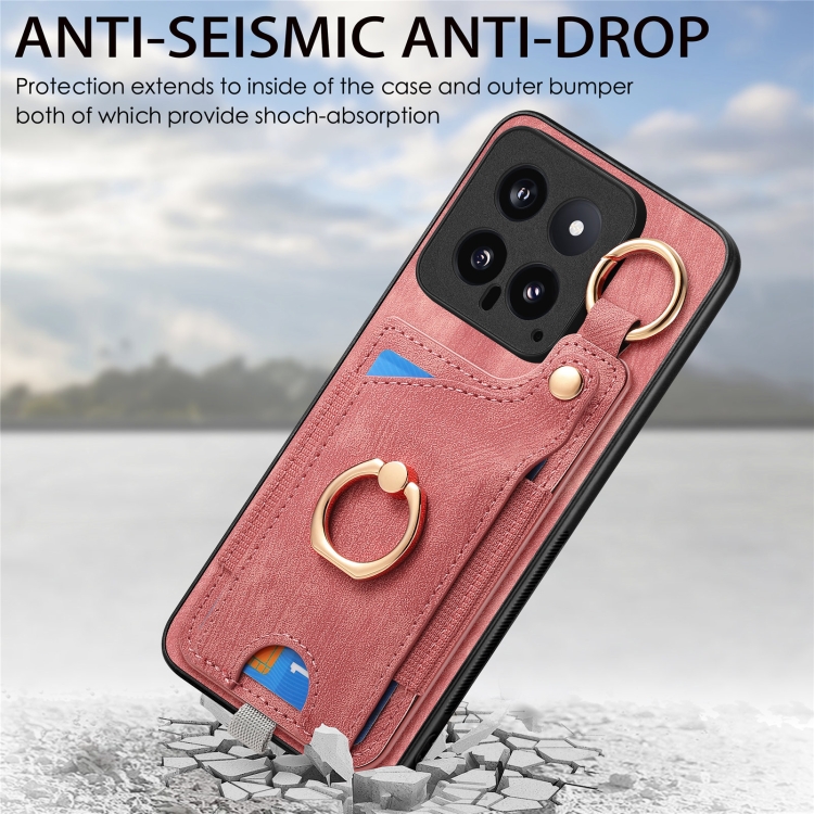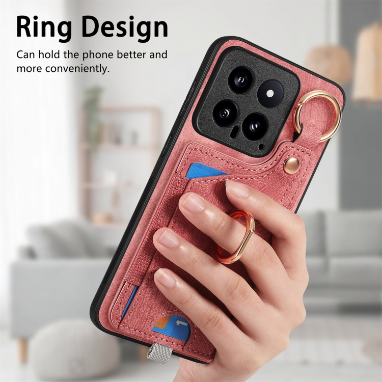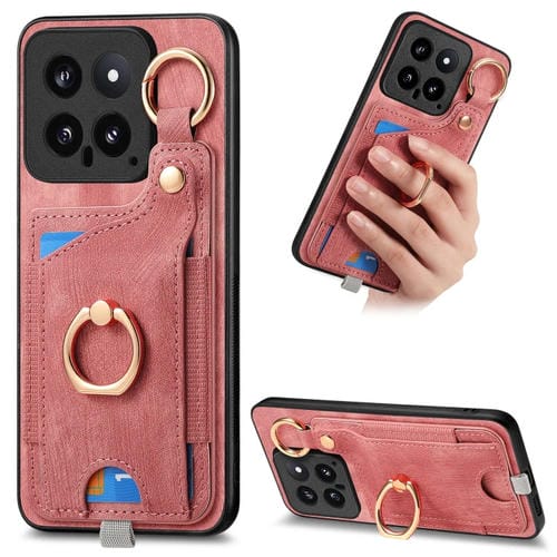 Para Xiaomi 14 Funda Para Teléfono Con Bolsa Para Tarjeta Con Anillo Y Sensación De Piel Retro Con Lazo Para Colgar (Rosa)
