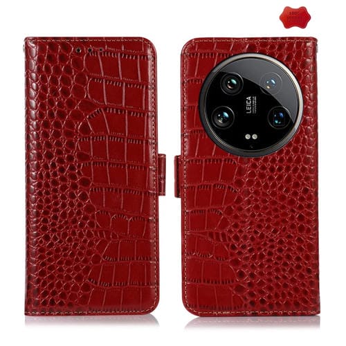 Para Xiaomi 14 Funda Para Teléfono De Cuero De Vaca Con Capa Superior De Cocodrilo Ultra (Rojo)