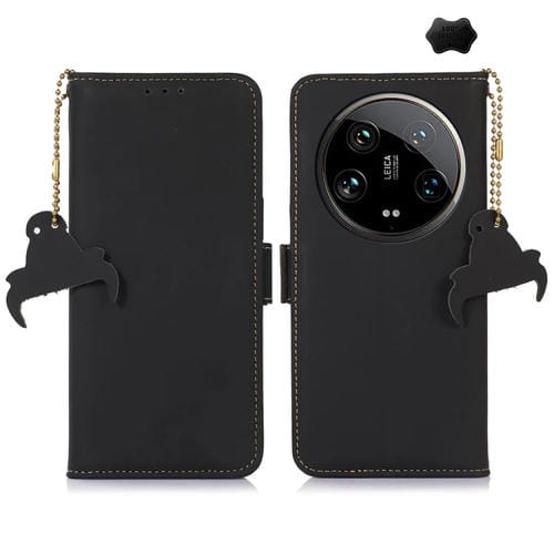 Para Xiaomi 14 Funda Para Teléfono De Cuero Rfid Magnético De Cuero Ultra Genuino (Negro)