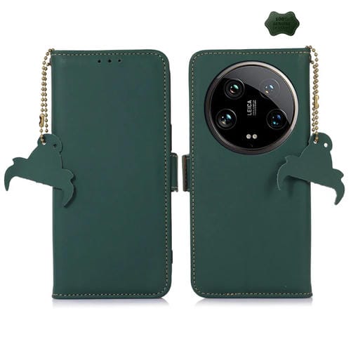 Para Xiaomi 14 Funda Para Teléfono De Cuero Rfid Magnético De Cuero Ultra Genuino (Verde)