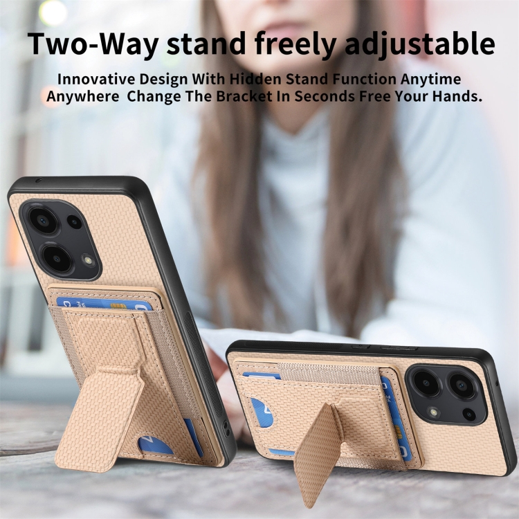 Para Xiaomi 14 Funda Plegable Para Teléfono Con Bolsa Para Tarjeta Elástica Con Soporte Plegable De Fibra De Carbono (Caqui)