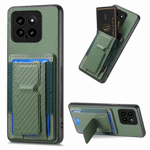 Para Xiaomi 14 Funda Plegable Para Teléfono Con Bolsa Para Tarjeta Elástica Con Soporte Plegable De Fibra De Carbono (Verde)