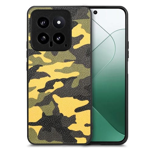 Para Xiaomi 14 Funda Trasera De Cuero De Camuflaje Retro (Amarillo)