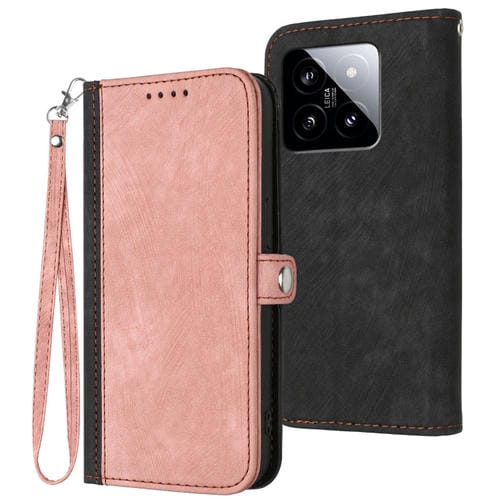 Para Xiaomi 14 Hebilla Lateral Doble Pliegue Correa De Mano Funda De Cuero Para Teléfono (Rosa)